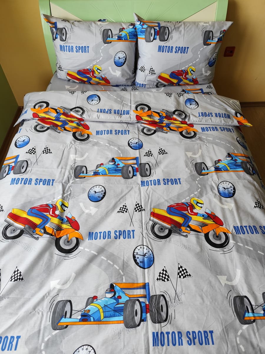 Детски Комплект Мотори 100%ПАМУК РАНФОРС С ОЛЕКОТЕНА ЗАВИВКА