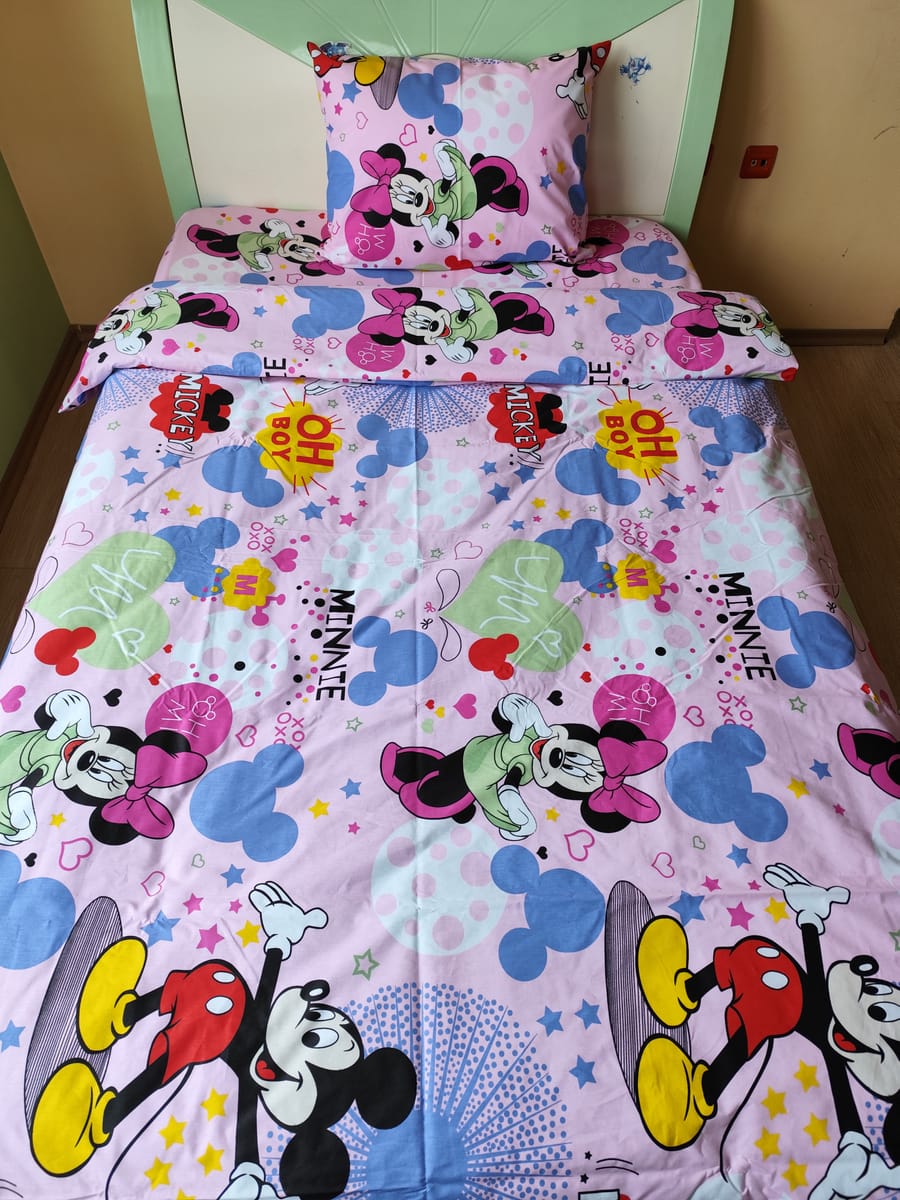 Детски Комплект Розови Мишлета с олекотена завивка