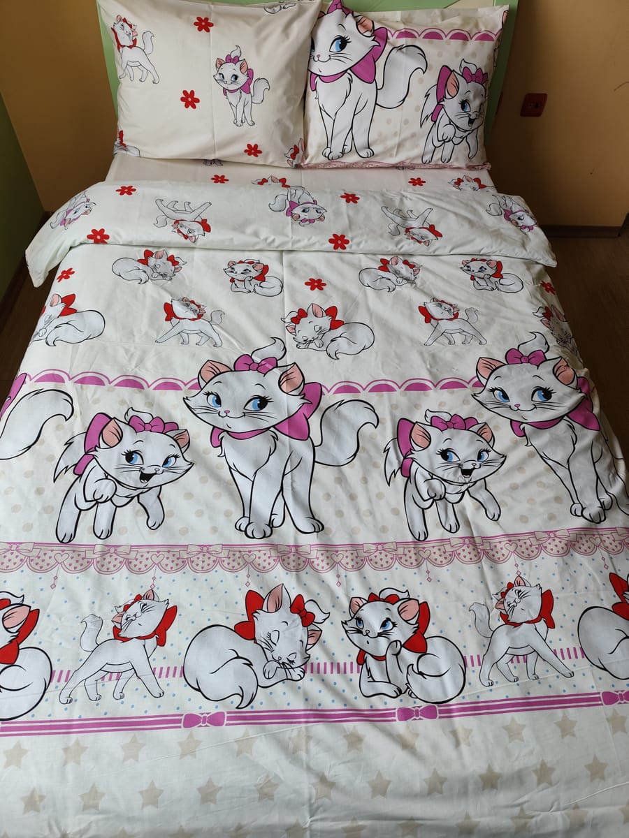 Детски Комплект Семейство Котета Екрю 100%ПАМУК РАНФОРС С ОЛЕКОТЕНА ЗАВИВКА