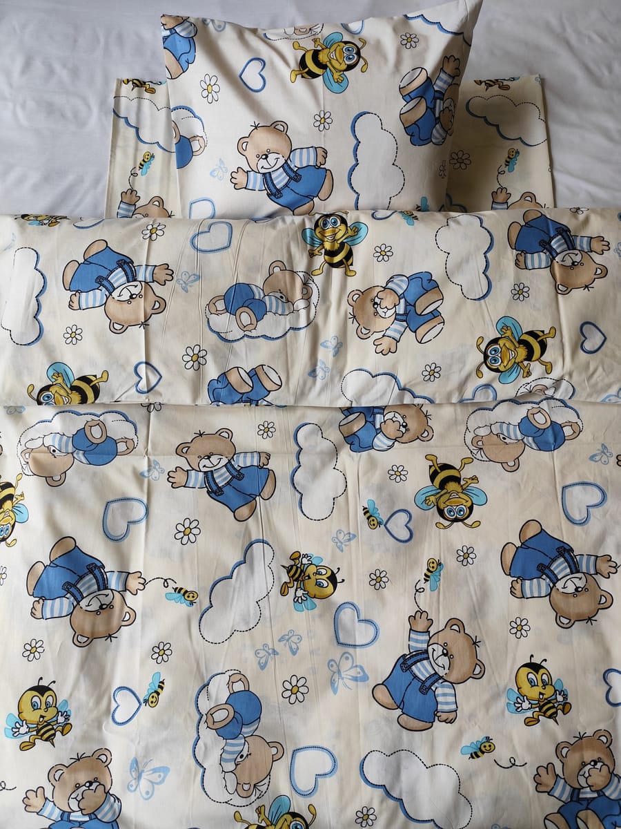 Комплект Бебе Бежови Пчелички 100%ПАМУК РАНФОРС БЕЗ ОЛЕКОТЕНА ЗАВИВКА: