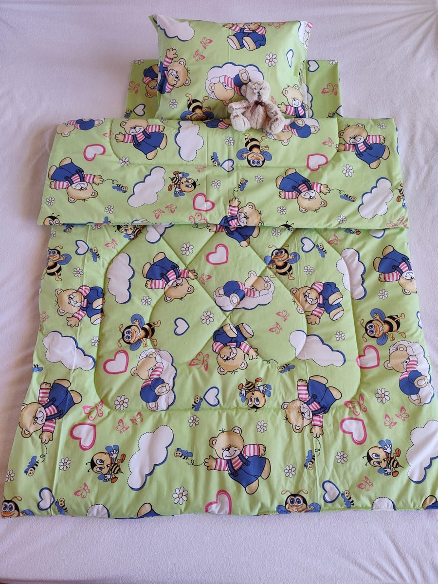 Начало / Продукти / Бебешки комплекти с олекотена завивка / Комплект Бебе Зелени Пчелички с Олекотена Завивка