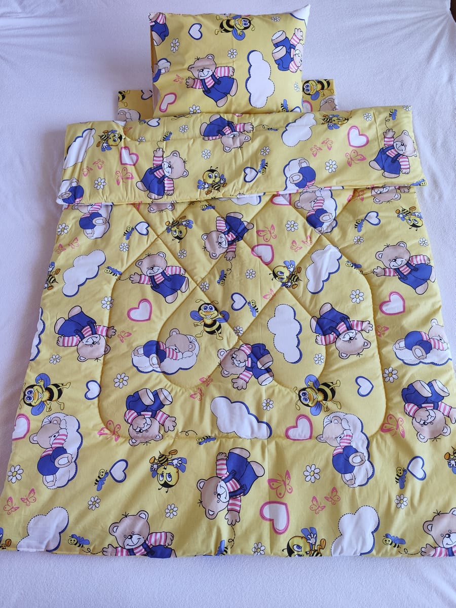 Комплект Бебе Жълти Пчелички 100%ПАМУК РАНФОРС БЕЗ ОЛЕКОТЕНА ЗАВИВКА: