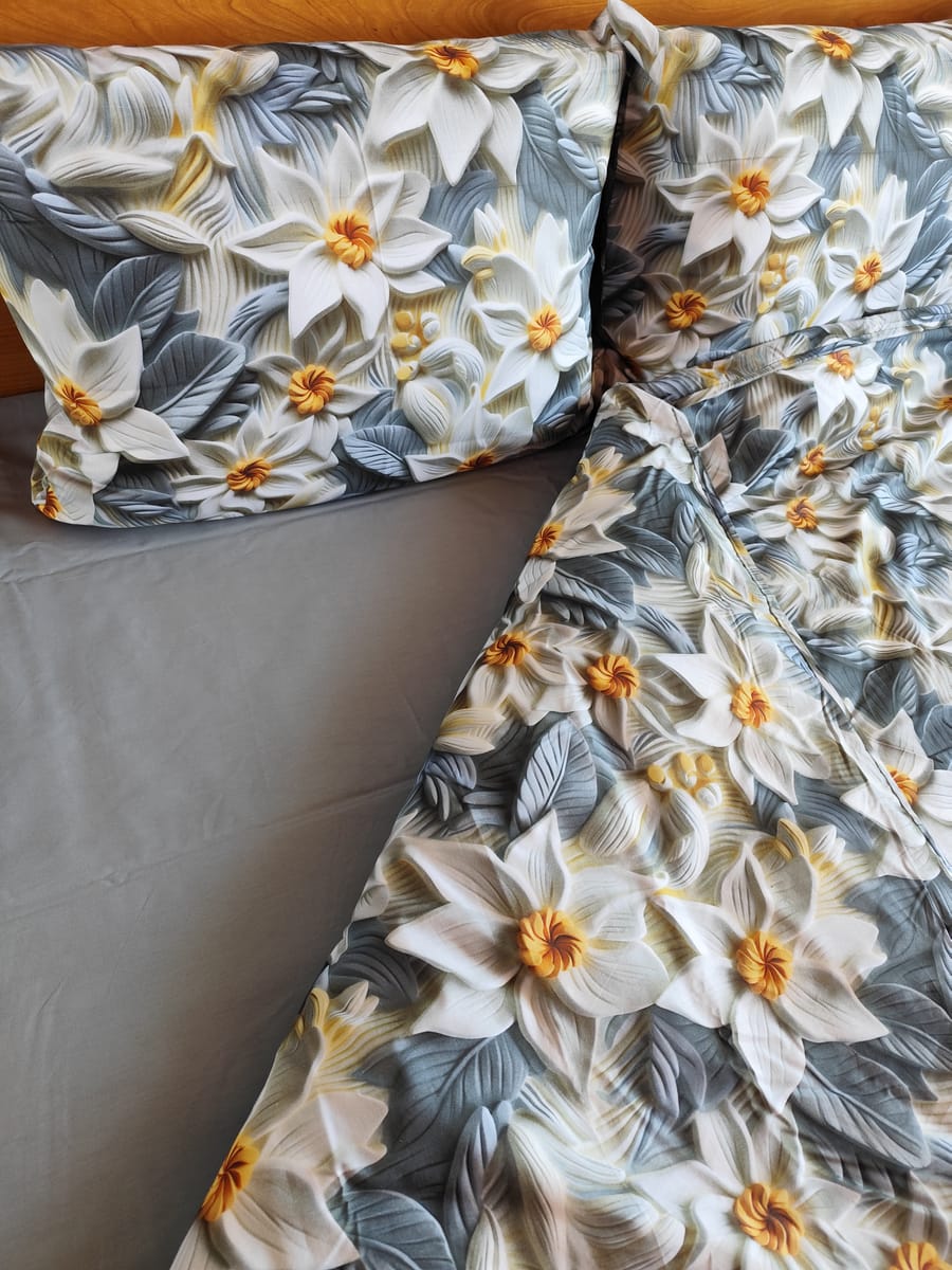 Открийте съвършенството на съня с нашата ексклузивна колекция спални комплекти с дигитална щампа от органичен памук. Тук луксът среща устойчивостта, а иновативният дизайн се преплита с чистата, естествена мекота. Всеки комплект е внимателно създаден, за да ви предложи несравним комфорт, докато допринасяте за опазването на планетата. За разлика от конвенционалния памук, органичният се отглежда без употребата на вредни пестициди, хербициди и изкуствени торове, гарантирайки чистота и безопасност, като същевременно е дишащ и изключително мек. В комбинация с дигиталната щампа, която осигурява изумителни детайли и дълбочина на цветовете, нашите комплекти превръщат спалнята ви в артистично убежище. Подарете си лукса на естествените материи и се насладете на съвършен сън, знаейки, че сте избрали продукт, който е добър за вас и добър за планетата.