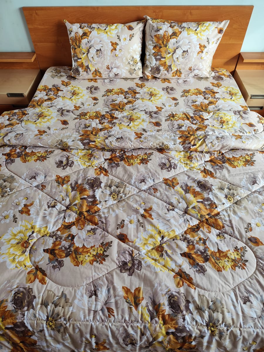 Комплект Флора Бежов 100% памук Ранфорс без олекотена завивка