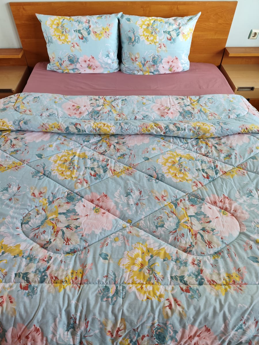 Комплект Флора Син 3 100% памук Ранфорс с олекотена завивка