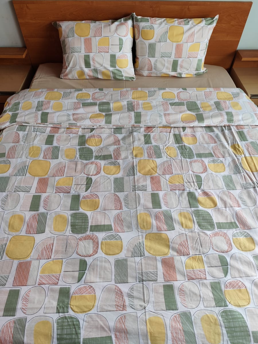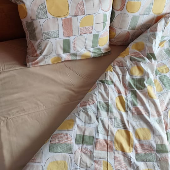 Комплект Камъчета Жълт 3 100% памук Ранфорс с олекотена завивка