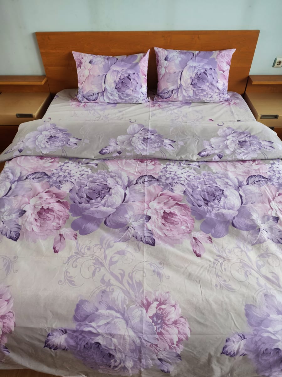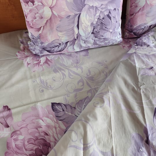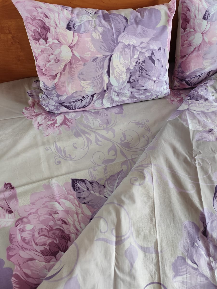 Комплект Лилави Цветя 100% памук Ранфорс без олекотена завивка