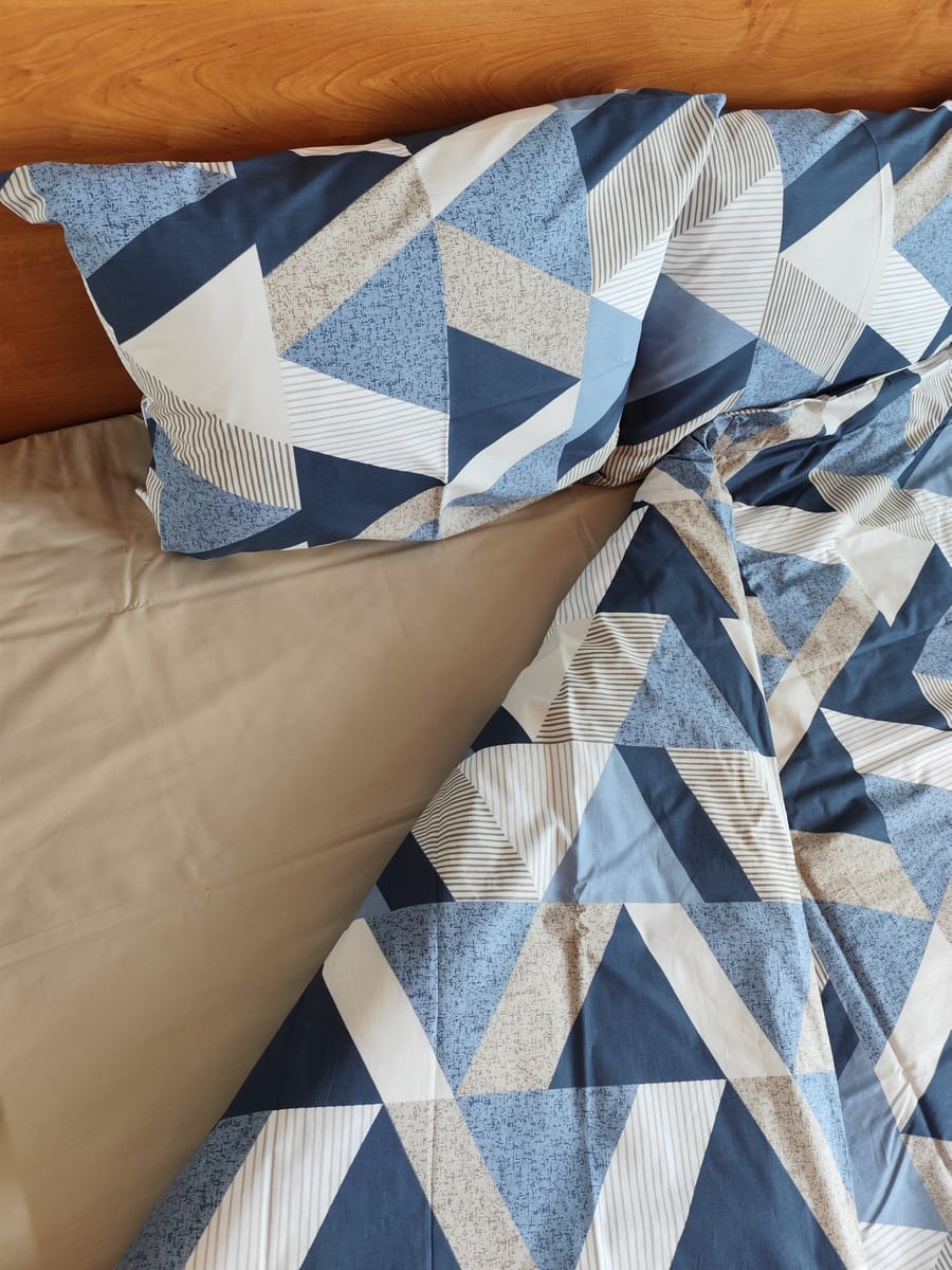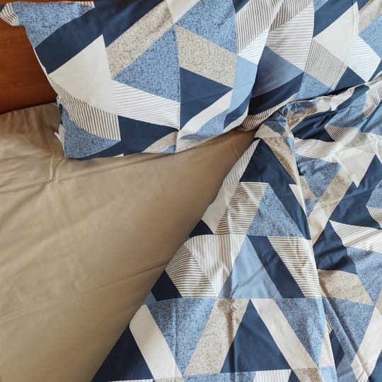 Комплект Триъгълници Син 2 100% памук Ранфорс с олекотена завивка